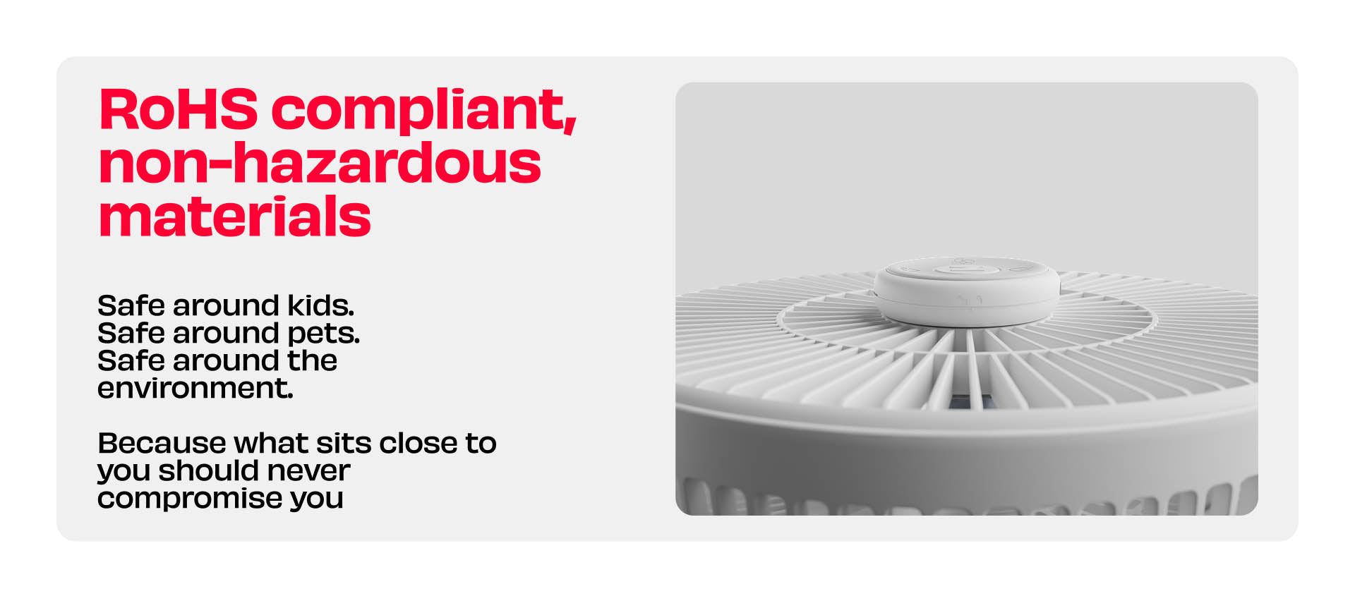 Yes. Finger‑safe grille (≤10 mm), child‑lock, rounded edges, thermal protections.