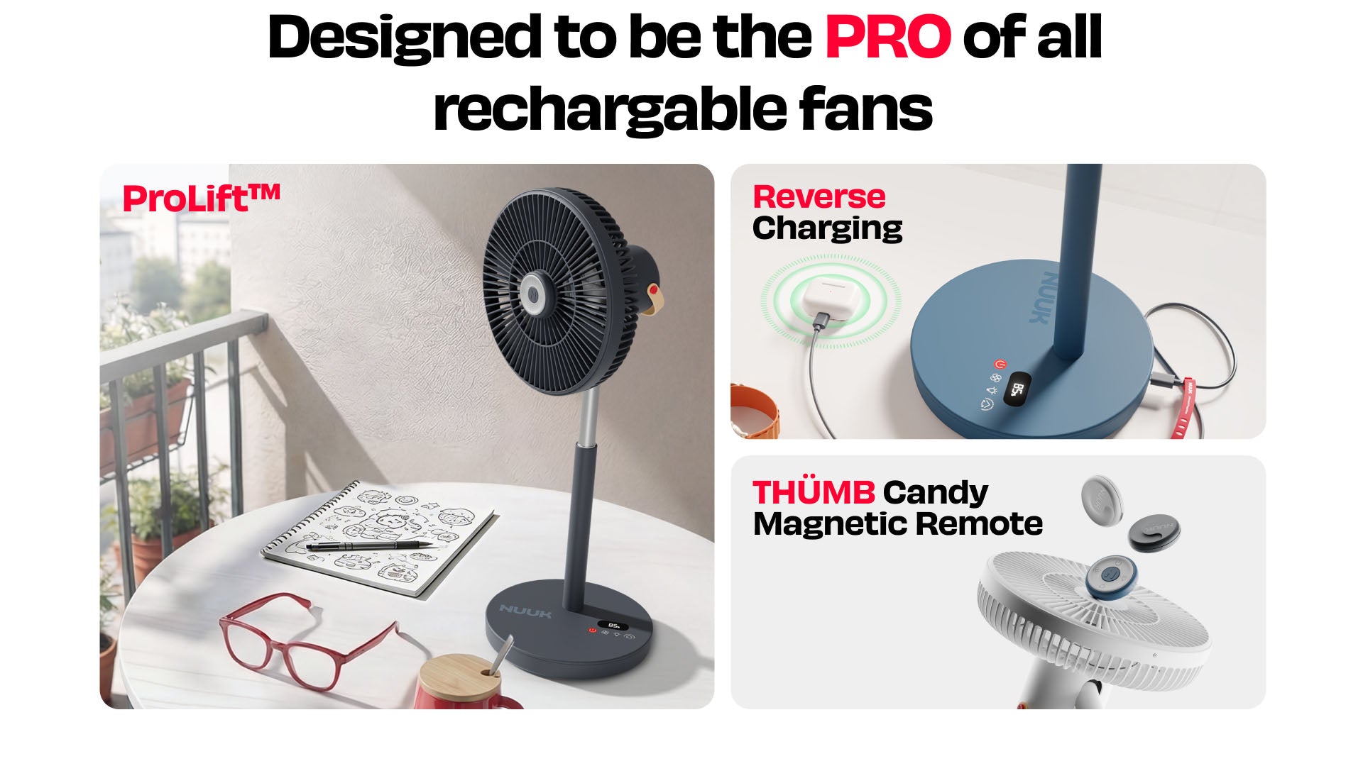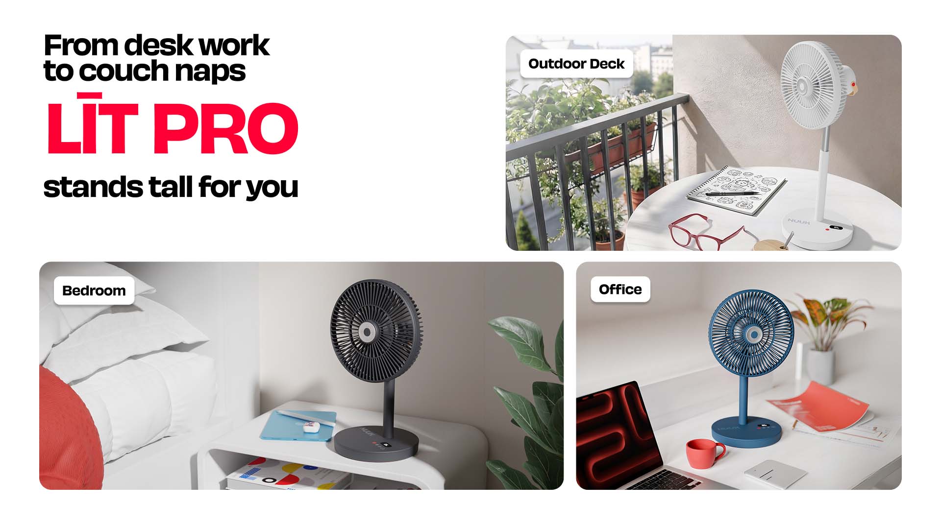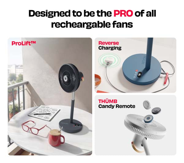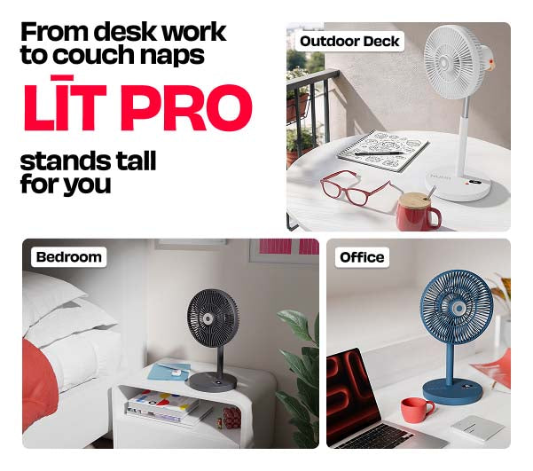 LĪT PRO is a rechargeable fan designed for modern homes, delivering powerful airflow, all-day battery life, and adjustable height for flexible use.