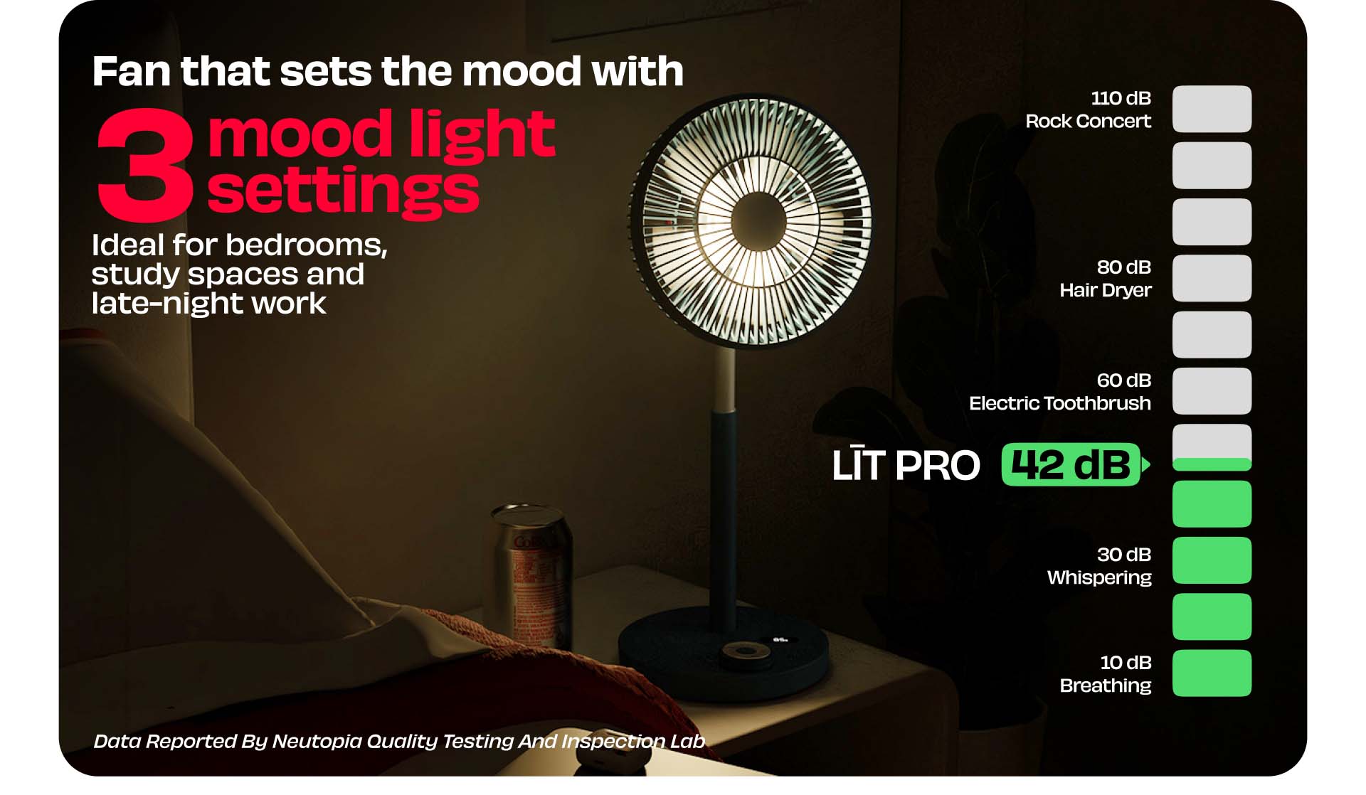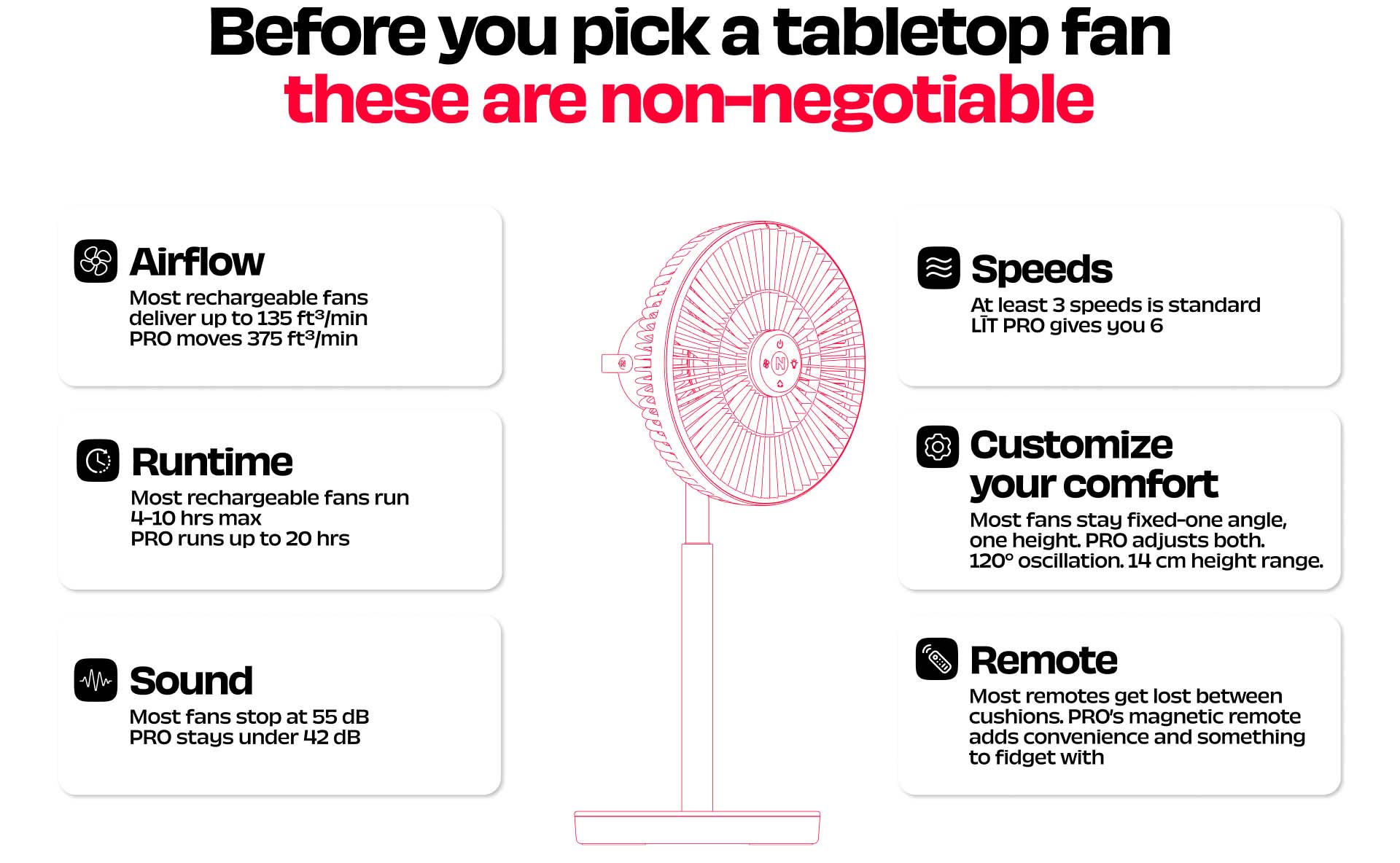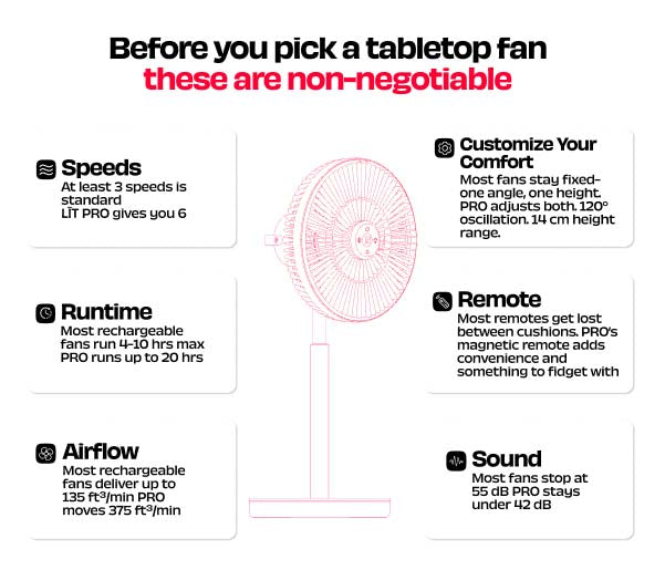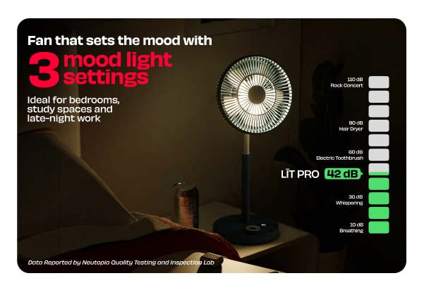 Rechargeable Table Fan with ProLift™ Adjustable Stem and Mood Light | LĪT PRO