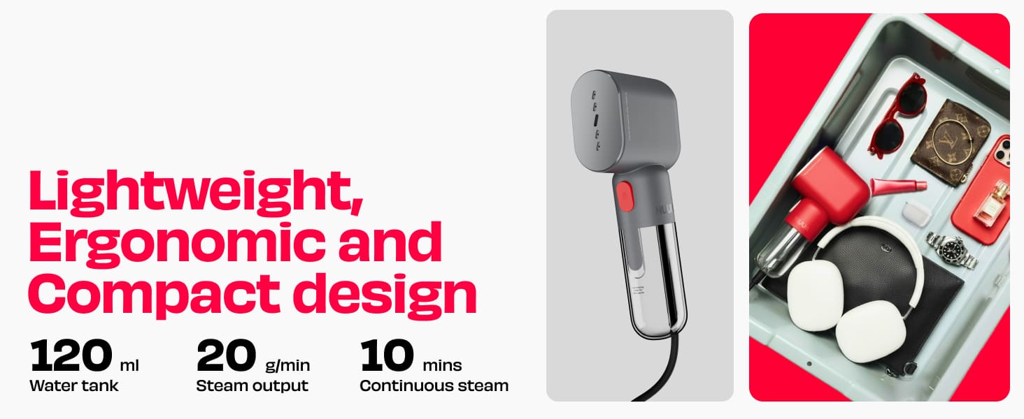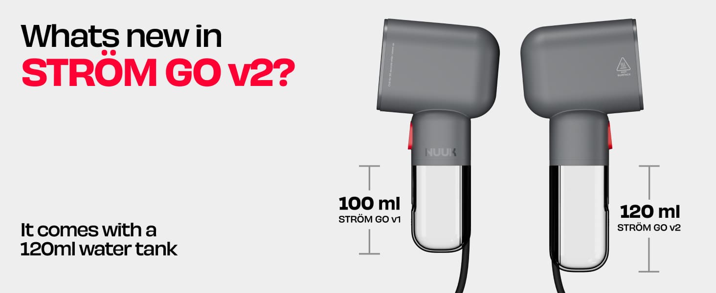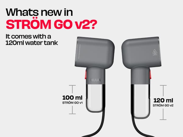 Meet STROM GO v2: the badass, compact steamer that heats up in 30 seconds and blasts 20g of steam per minute. Lightweight with a 120ml tank for 10 minutes of wrinkle-busting action. Travel light, steam right.